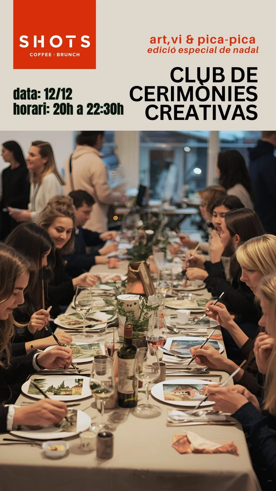 Bienvenid@s a un espacio donde la creatividad se celebra como un ritual. En el Club de Ceremonias Creativas nos reunimos para crear, jugar y conectar, acompañados de arte, vino, pica-pica y un ambiente lleno de belleza y calidez. Velas, aromas, visuales y música transforman la sala en un refugio donde cada gesto se convierte en arte.
