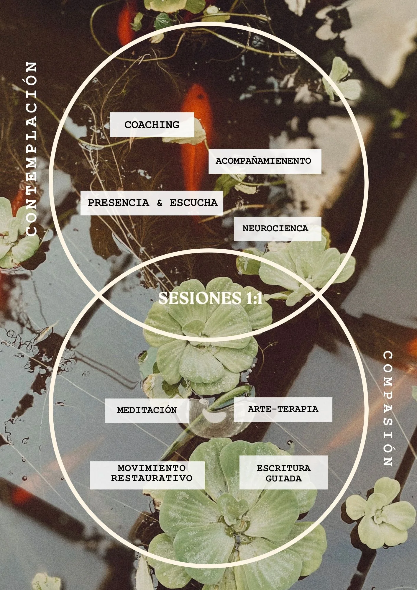 “Las sesiones 1:1 son un espacio creado para acompañarte en momentos vitales de cambio, ayudándote a transitar cada etapa desde la conciencia, el aprendizaje y el crecimiento personal.”